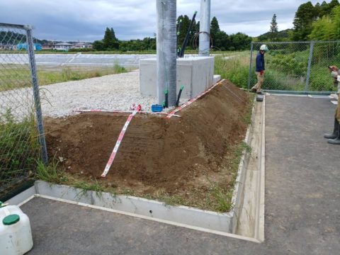 ソーラー発電設備・蓄電池に伴う工事の風景です。